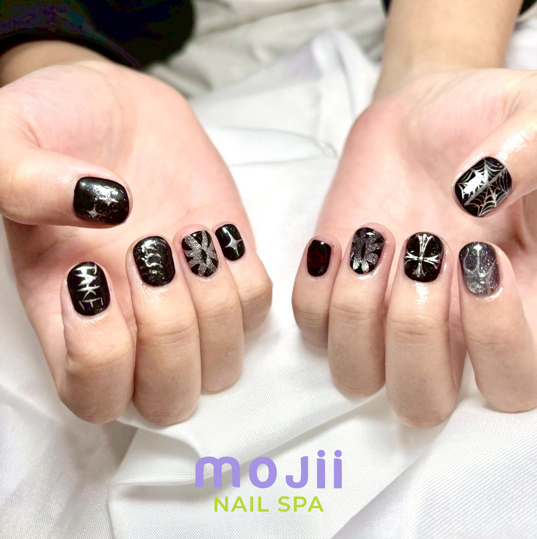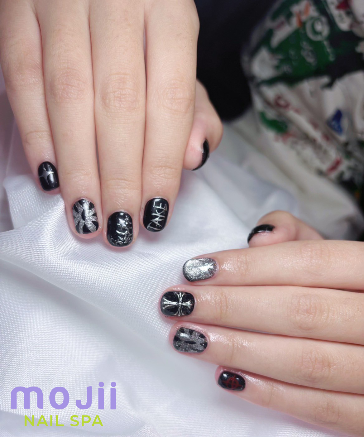 ไม่ว่าจะเป็นลายเพ้นท์แบบ Dark Graffiti, สัญลักษณ์ Cross สุดเท่, หรือการใช้ Chrome Effect สุดล้ำ ลุคนี้คือการประกาศความเป็นตัวตนที่ชัดเจน เหมาะสำหรับผู้ที่หลงใหลในแฟชั่นสไตล์ Gothic หรือ Rock & Roll ที่ดูหรูหราแต่แฝงด้วยความดุดัน มั่นใจได้เลยว่าเล็บนี้จะเสริมลุคของคุณให้ดูดีและมีพลังในทุกสถานการณ์ค่ะ!
